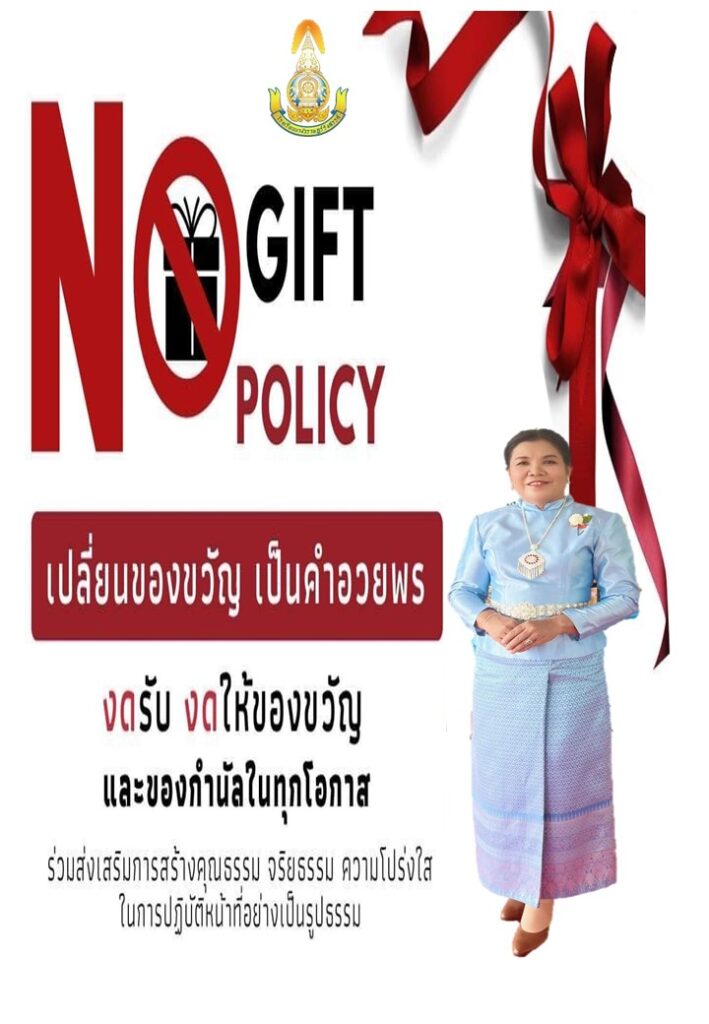 O๓๑ ประกาศเจตนารมณ์นโยบาย No Gift Policy จากการปฏิบัติหน้าที่