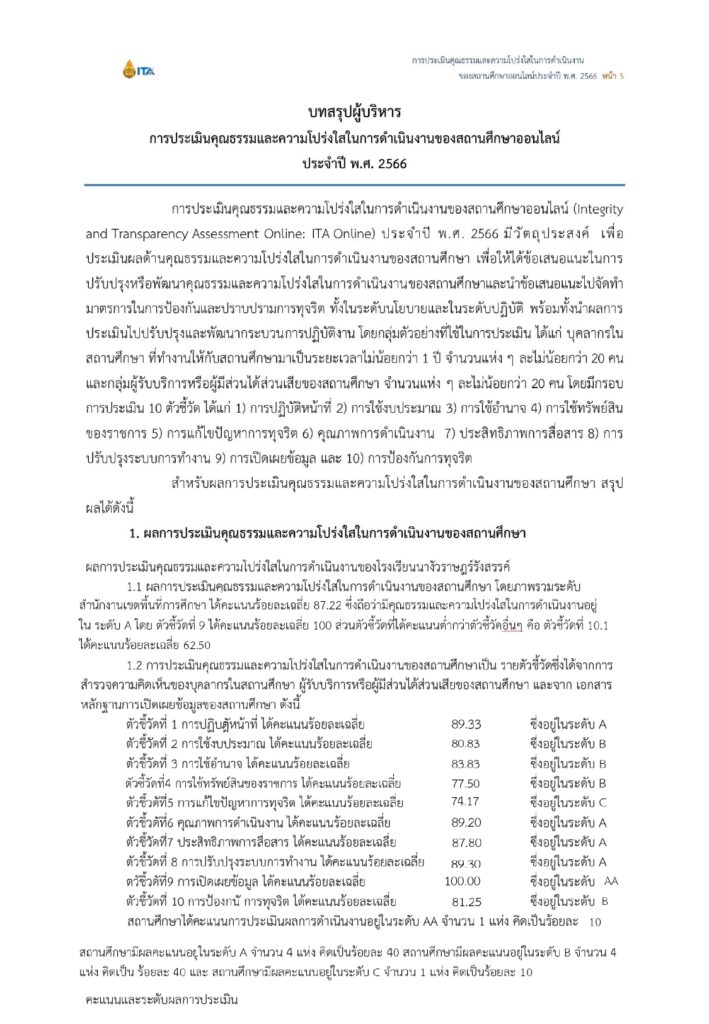 o35 รายงานผลการดำเนินการเพื่อส่งเสริมคุณธรรมและความโปร่งใสภายในหน่วยงาน